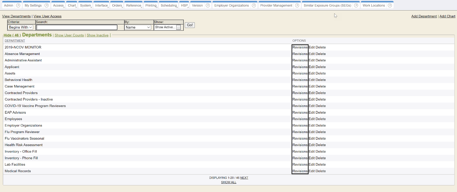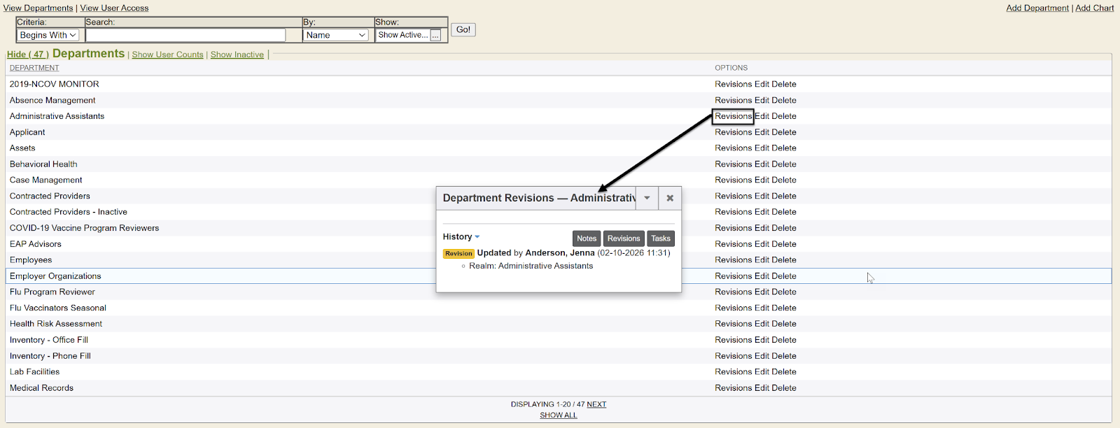 You can now view any revisions on Department names.