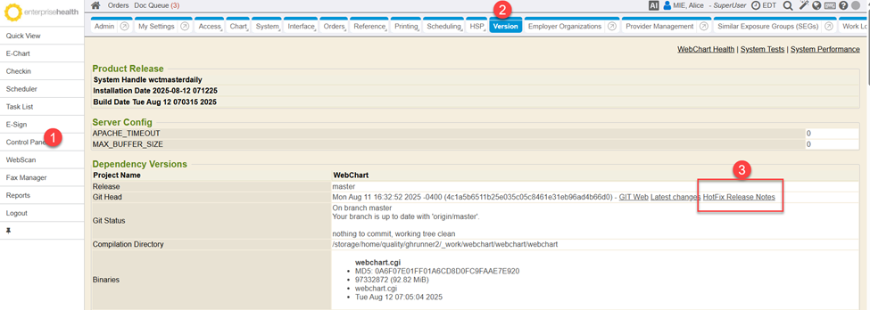 Hotfix Release Notes are now available on the Version tab (Control Panel->Version). Release Notes will continue to be emailed to System Administrators on the hotfix notes email distribution list. If the Version tab does not display in your database, please contact your implementer for assistance installing it.