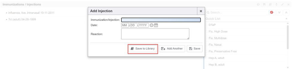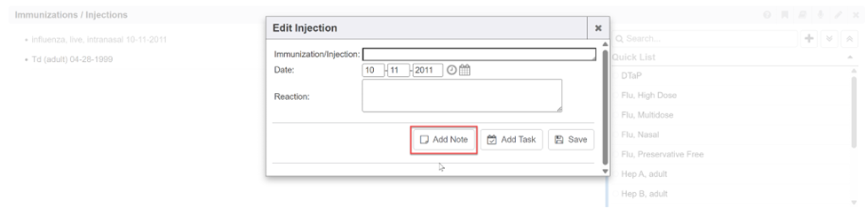 The Immunization / Injection Encounter Section has now been updated to more closely match the Allergies / Intolerances Encounter Section.