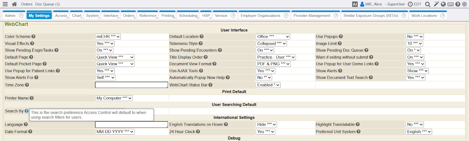 Beginning in RC202509, My Settings will display help bubbles next to each individual user preference. Hover of the help bubble for more information regarding the user preference.