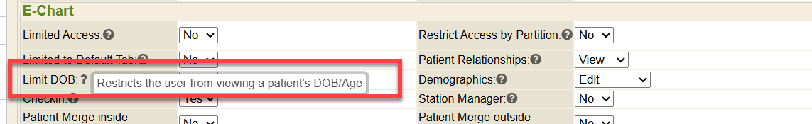 - If a user has Limit DOB = Yes, when performing a super search, any chart matches will not display DOB (date of birth) in its search results.